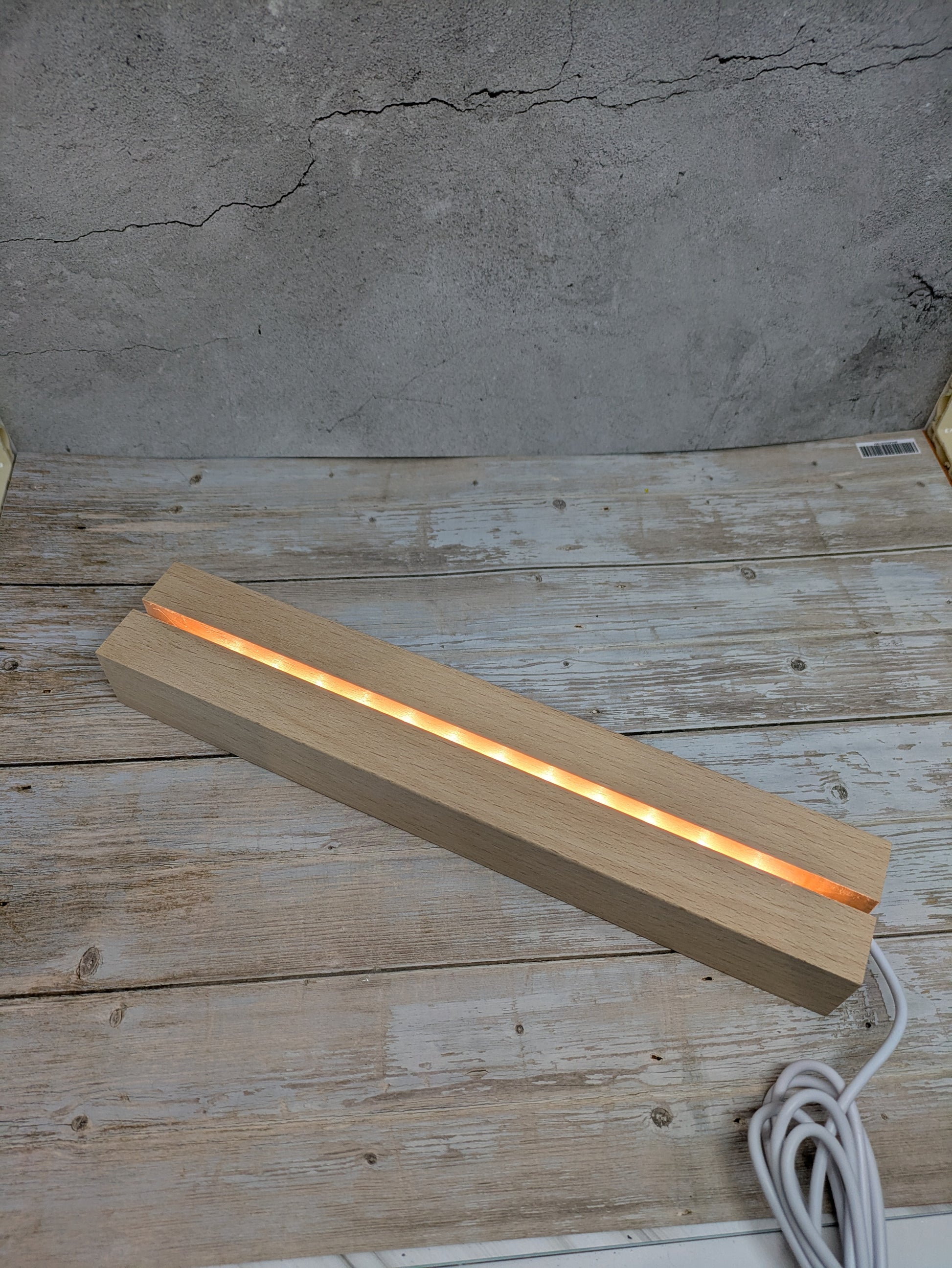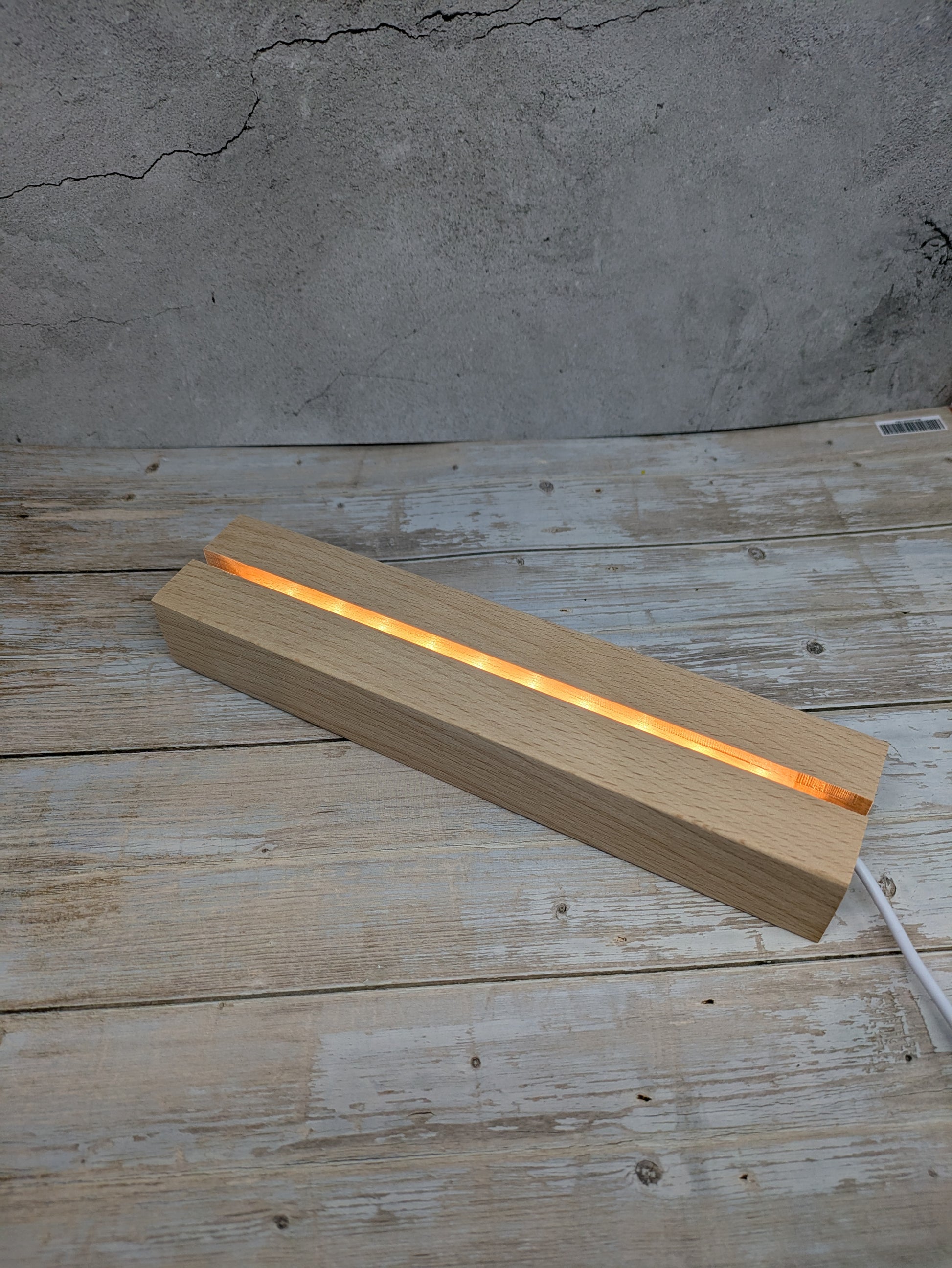 LED stand available in lengths of 150mm, 200mm, 240mm and 300mm. These stands are constructed from resin wood and are 45mm wide and 30mm high. These stands perfectly fit 3mm Tekta glass and illuminate it showing off your amazing work.